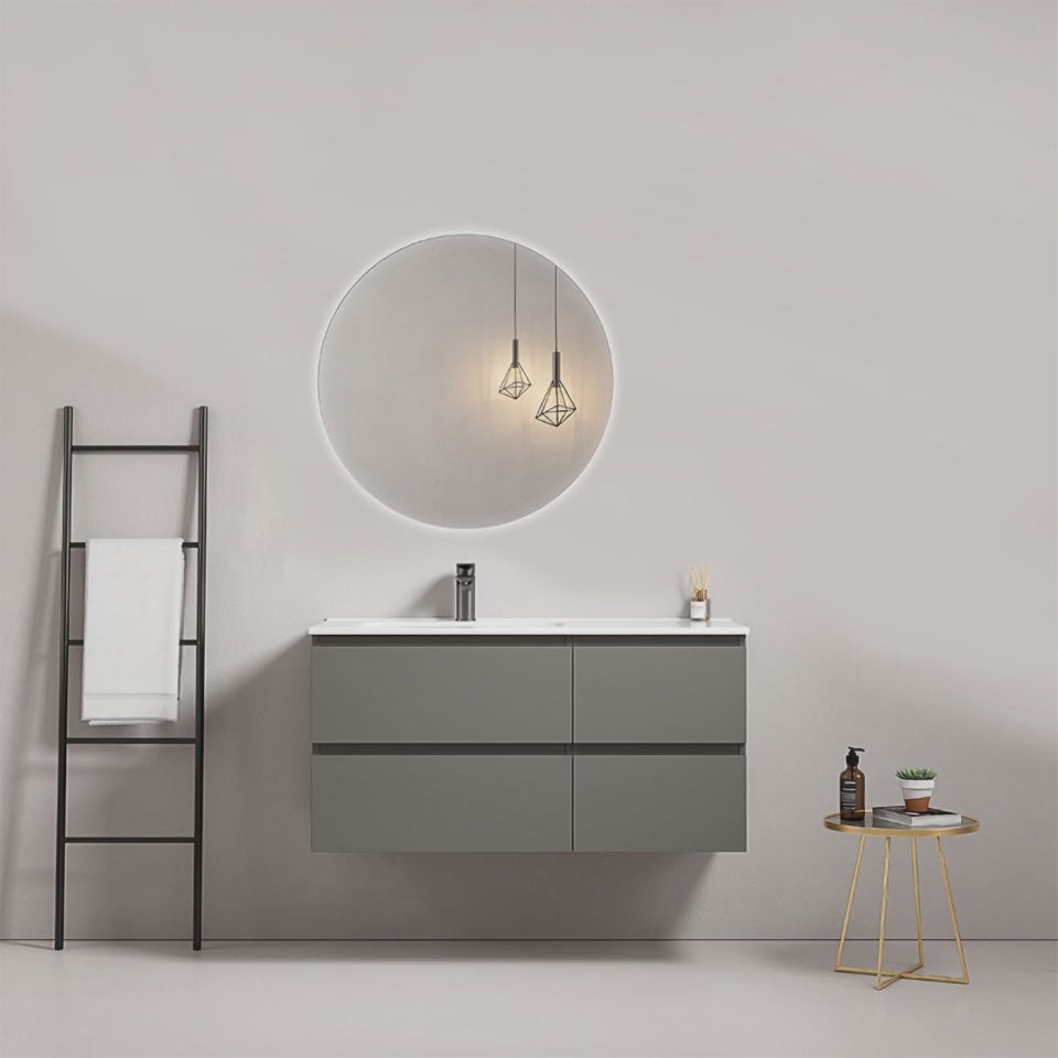 Mobile bagno sospeso 100 cm Grigio Londra Lavabo a Sinistra in Ceramica Specchio Tondo Retroilluminato - Fiji Paint