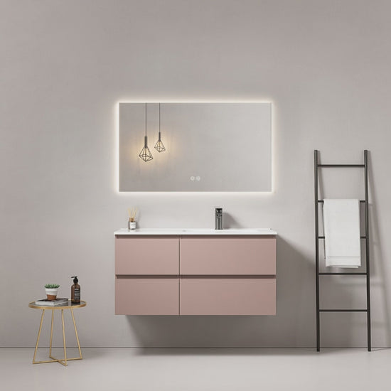 Mobile bagno sospeso 100 cm Rosa Retro Lavabo a Destra in Ceramica Specchio Quadro Retroilluminato - Fiji Paint