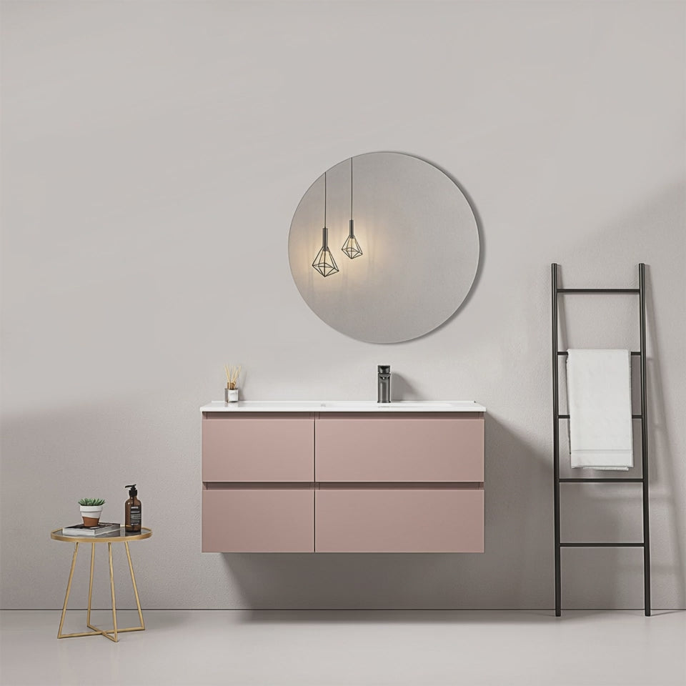 Mobile bagno sospeso 100 cm Rosa Retro Lavabo a Destra in Ceramica Specchio Tondo - Fiji Paint