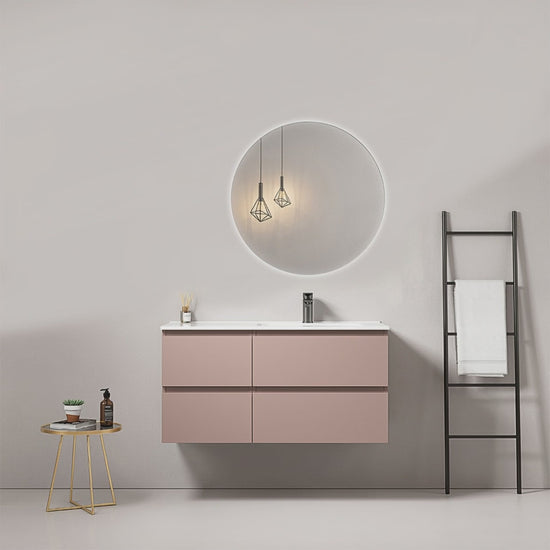 Mobile bagno sospeso 100 cm Rosa Retro Lavabo a Destra in Ceramica Specchio Tondo Retroilluminato - Fiji Paint