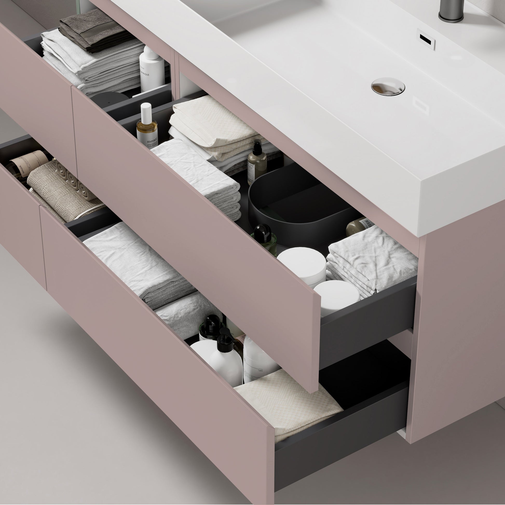 Mobile bagno sospeso 100 cm Rosa Retro Lavabo a Destra in Resina Specchio Quadro - Fiji Paint