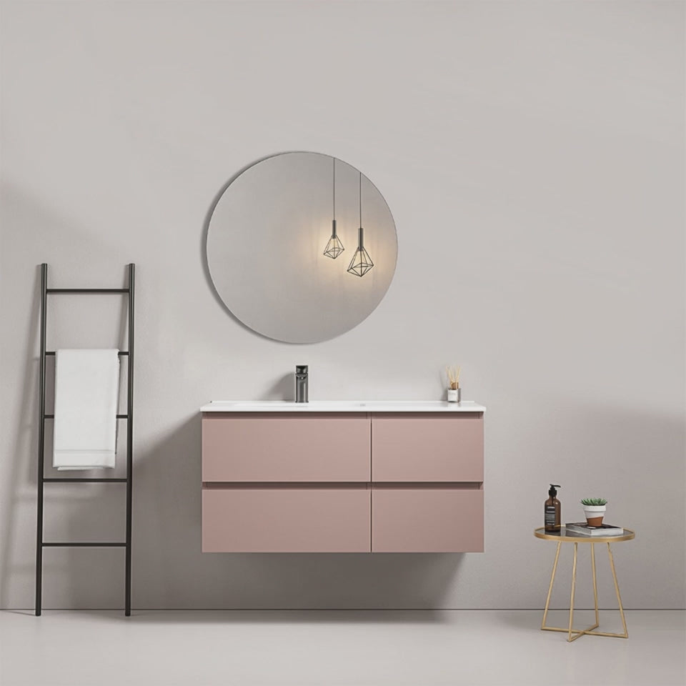 Mobile bagno sospeso 100 cm Rosa Retro Lavabo a Sinistra in Ceramica Specchio Tondo - Fiji Paint