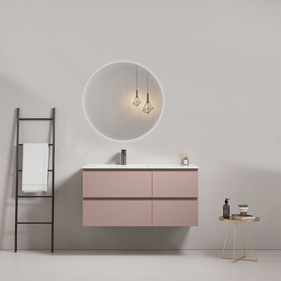 Mobile bagno sospeso 100 cm Rosa Retro Lavabo a Sinistra in Ceramica Specchio Tondo Retroilluminato - Fiji Paint