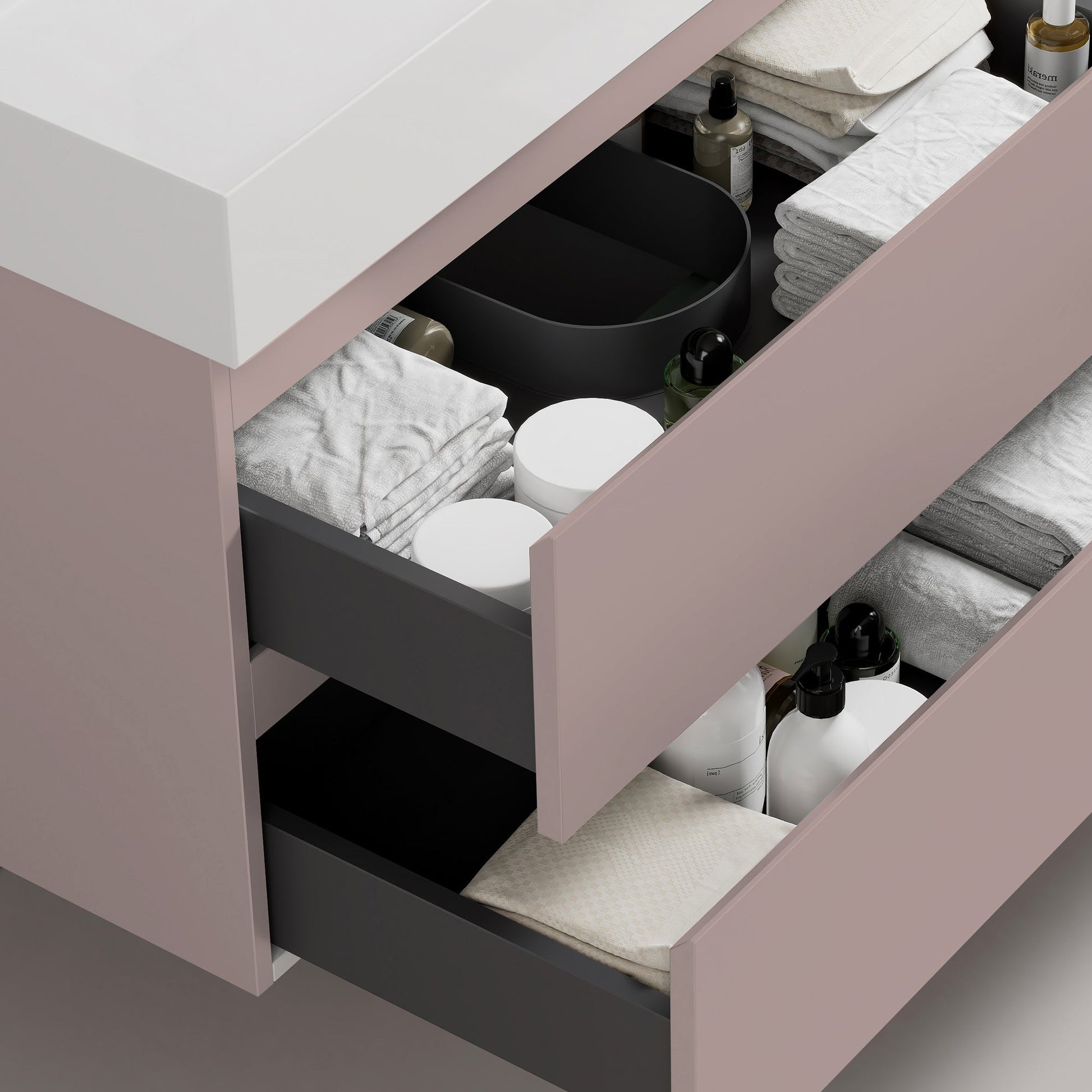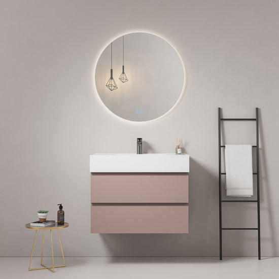 Mobile bagno sospeso 100 cm Rosa Retro Lavabo in Resina Specchio Tondo Retroilluminato - Fiji Paint