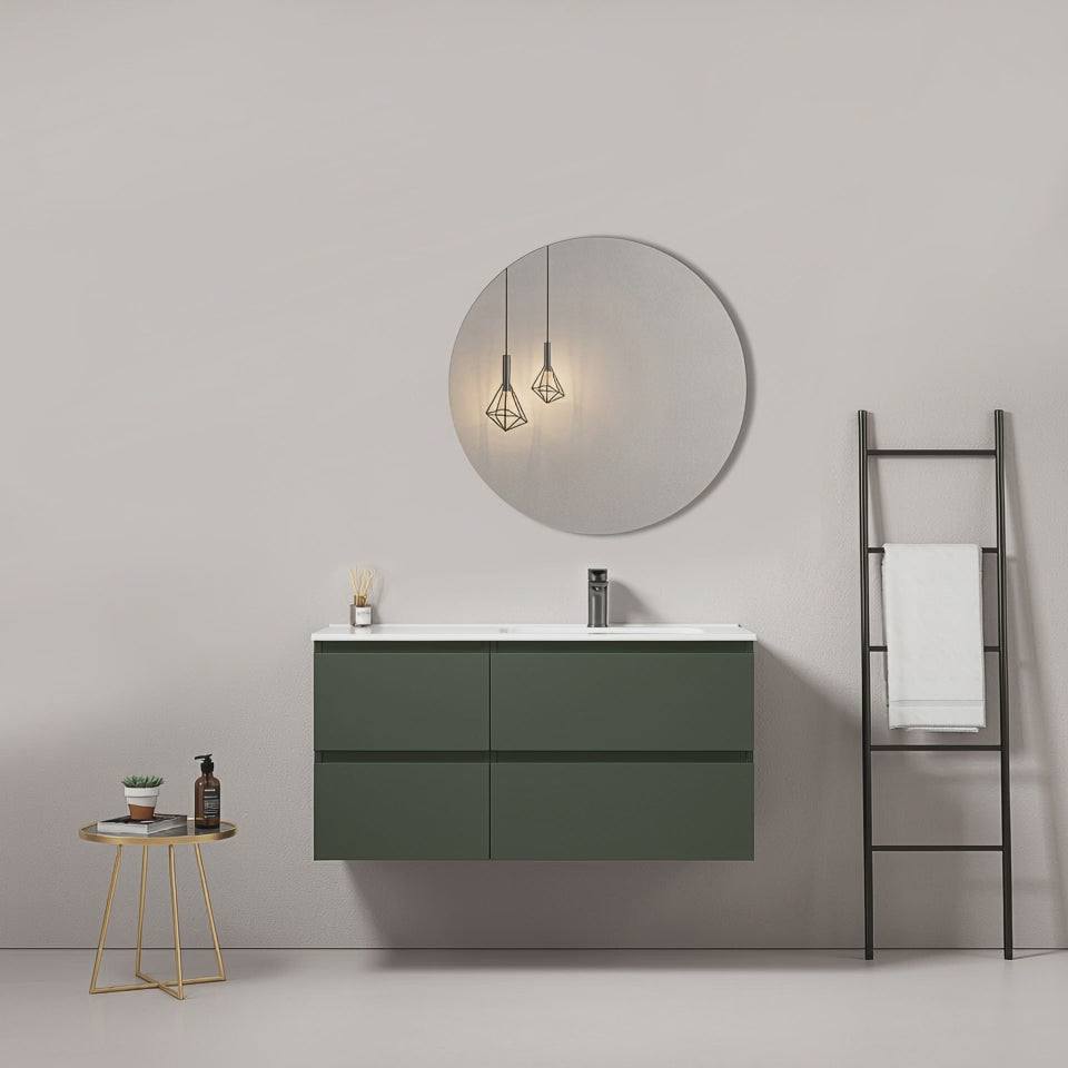 Mobile bagno sospeso 100 cm Verde Comodoro Lavabo a Destra in Ceramica Specchio Tondo - Fiji Paint