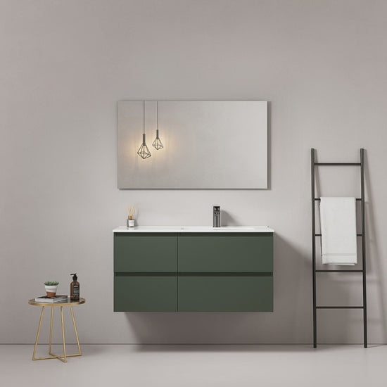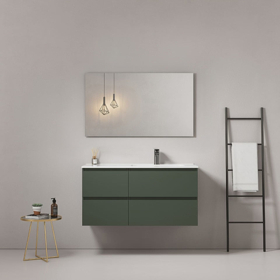 Mobile bagno sospeso 100 cm Verde Comodoro Lavabo a Sinistra in Ceramica Specchio Quadro - Fiji Paint