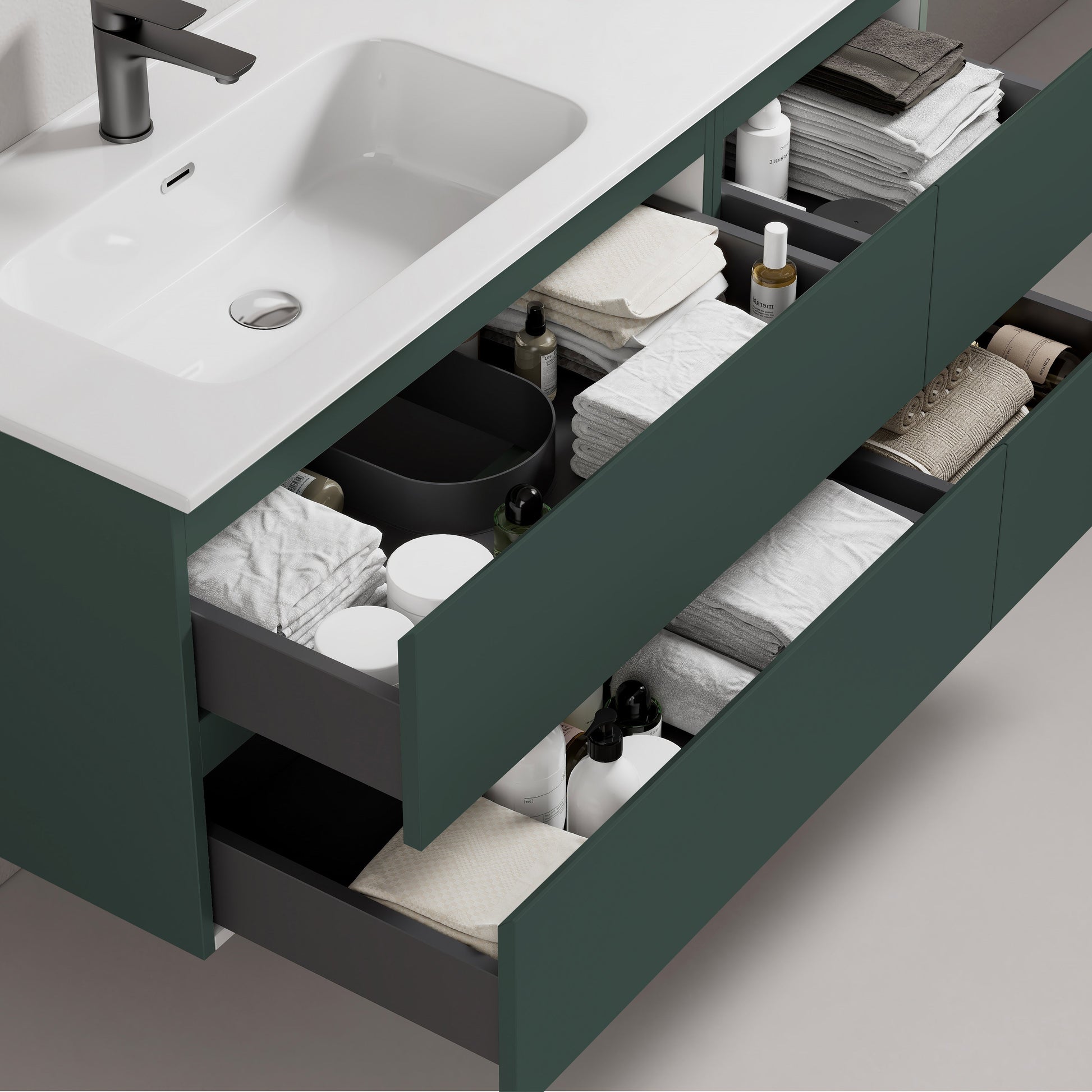 Mobile bagno sospeso 100 cm Verde Comodoro Lavabo a Sinistra in Ceramica Specchio Quadro Retroilluminato - Fiji Paint