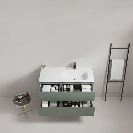 Mobile bagno sospeso 100 cm Verde Salvia Lavabo a Destra in Ceramica Senza Specchio - Fiji Paint