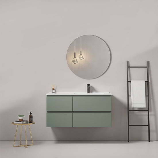 Mobile bagno sospeso 100 cm Verde Salvia Lavabo a Destra in Ceramica Specchio Tondo - Fiji Paint