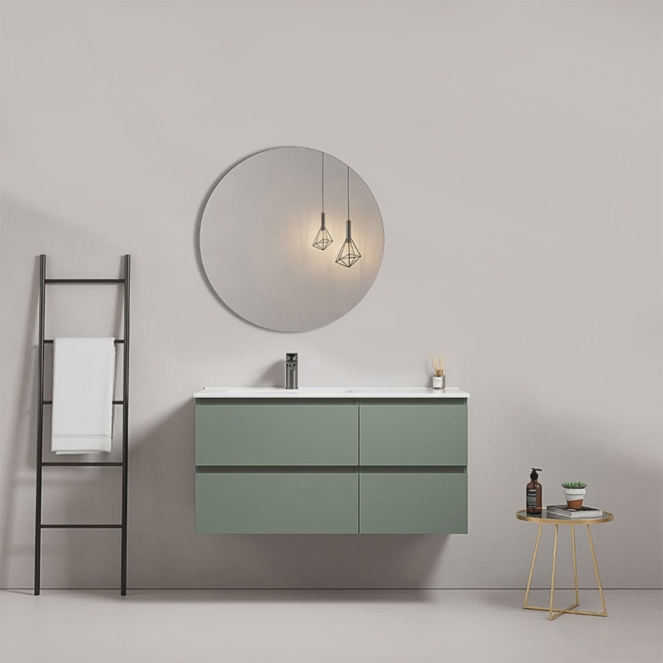 Mobile bagno sospeso 100 cm Verde Salvia Lavabo a Sinistra in Ceramica Specchio Tondo - Fiji Paint