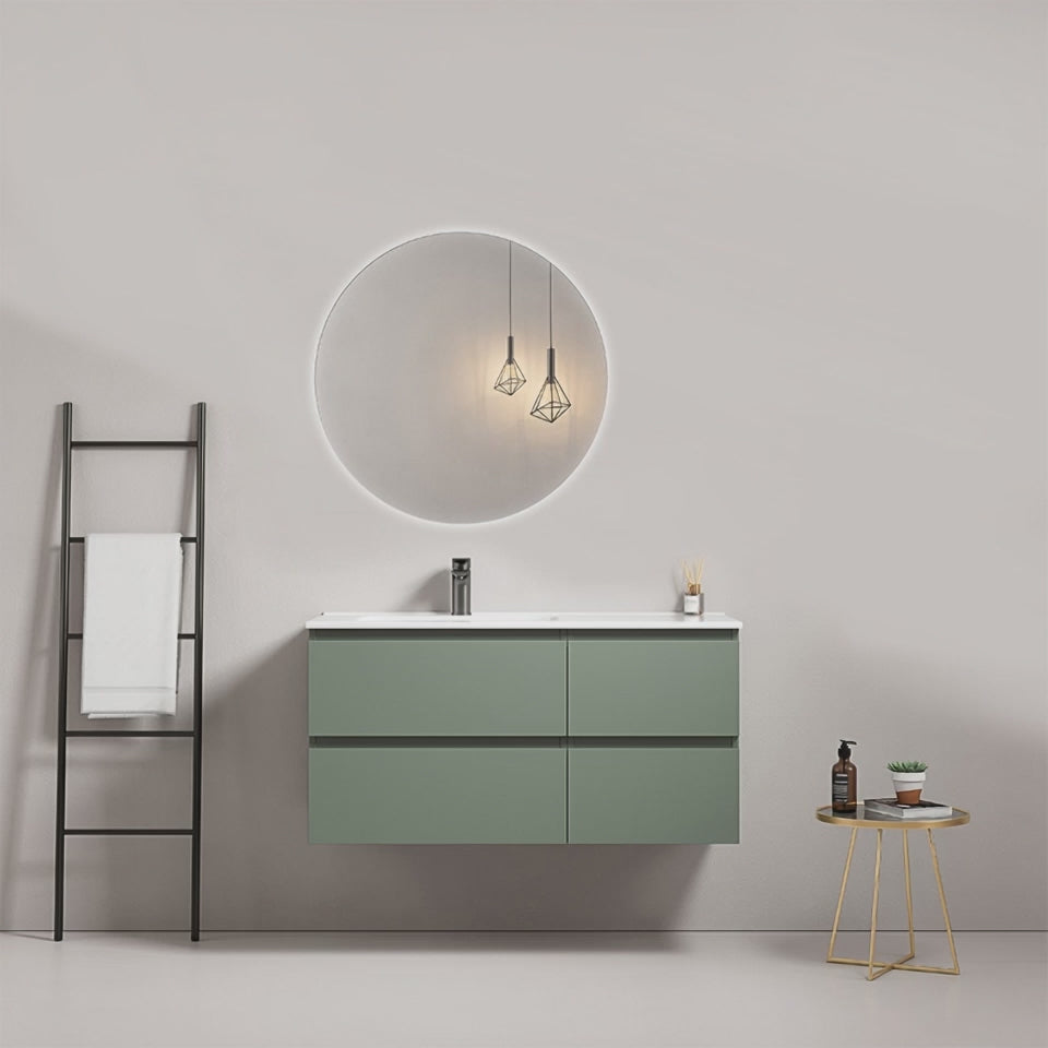 Mobile bagno sospeso 100 cm Verde Salvia Lavabo a Sinistra in Ceramica Specchio Tondo Retroilluminato - Fiji Paint