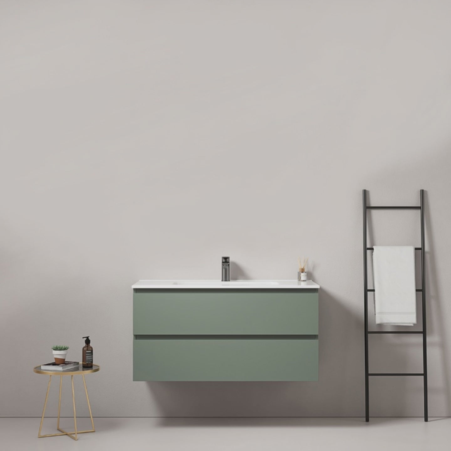 Mobile bagno sospeso 100 cm Verde Salvia Lavabo in Ceramica Senza Specchio - Fiji Paint