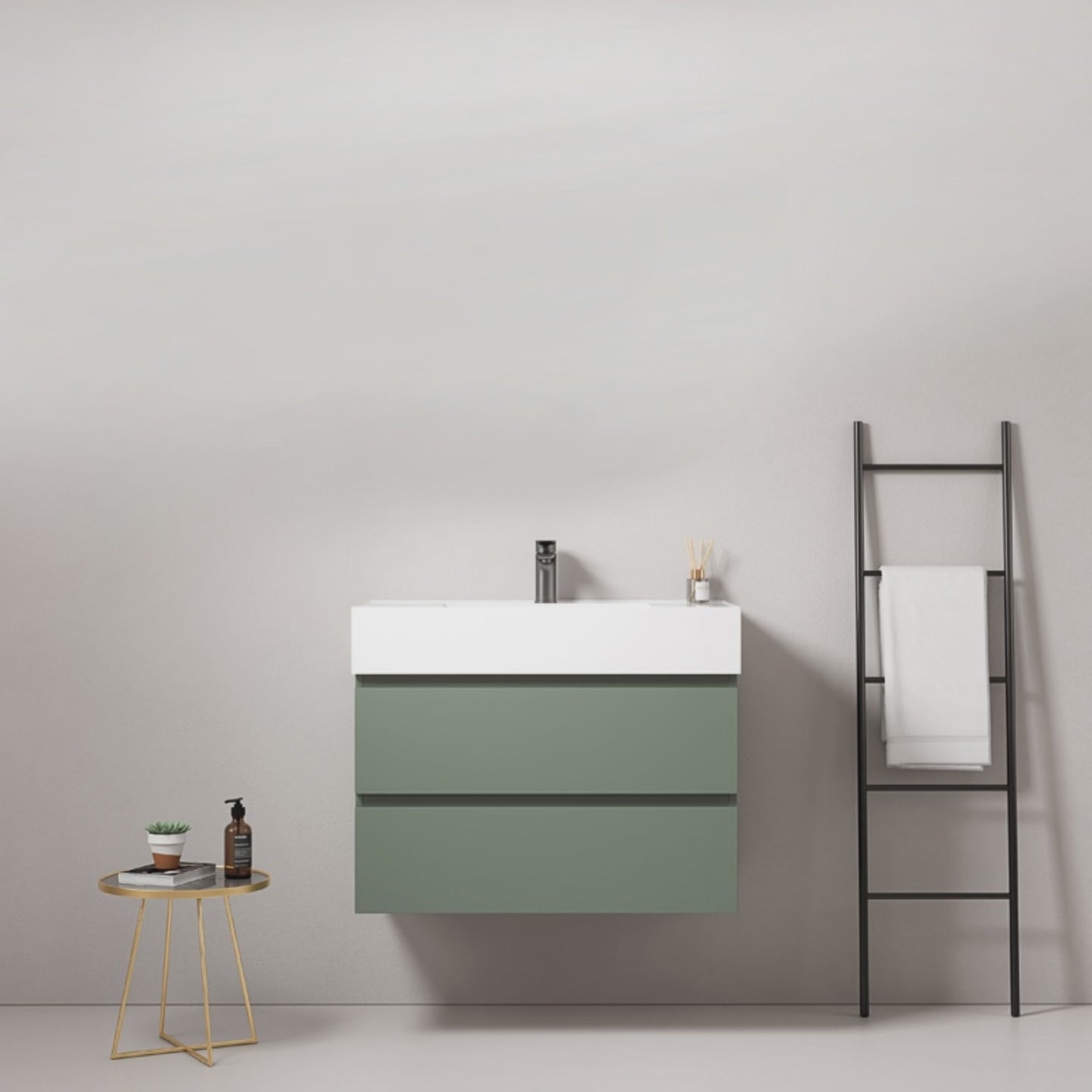 Mobile bagno sospeso 100 cm Verde Salvia Lavabo in Resina Senza Specchio - Fiji Paint