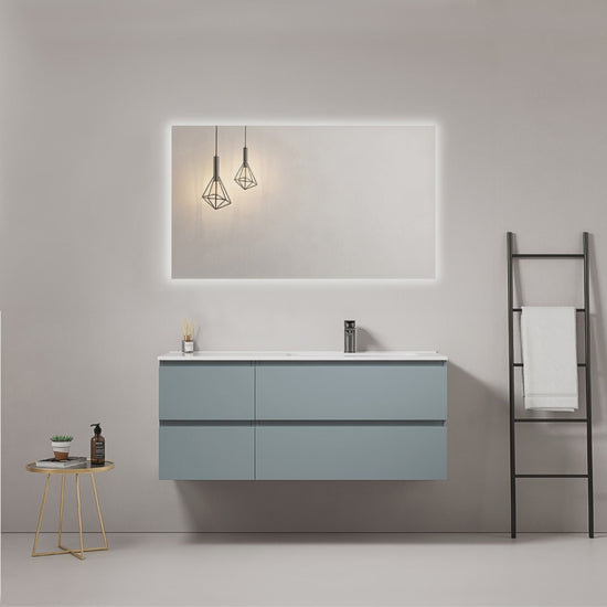 Mobile bagno sospeso 120 cm Blu Avio Lavabo a Destra in Ceramica Specchio Quadro Retroilluminato - Fiji Paint