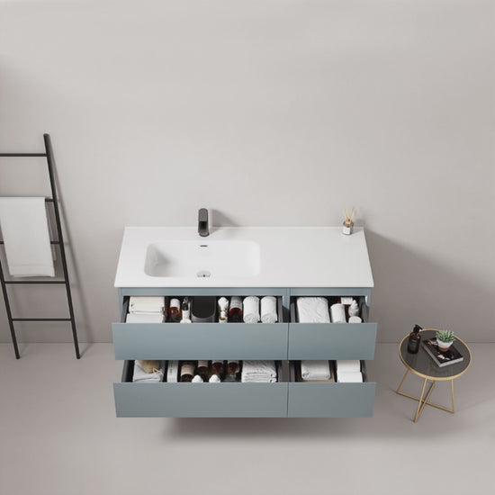 Mobile bagno sospeso 120 cm Blu Avio Lavabo a Sinistra in Ceramica Senza Specchio - Fiji Paint