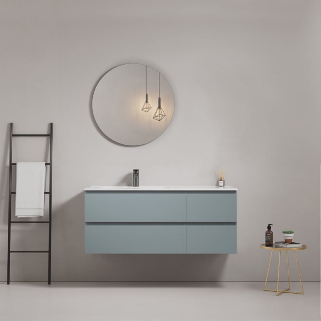 Mobile bagno sospeso 120 cm Blu Avio Lavabo a Sinistra in Ceramica Specchio Tondo - Fiji Paint