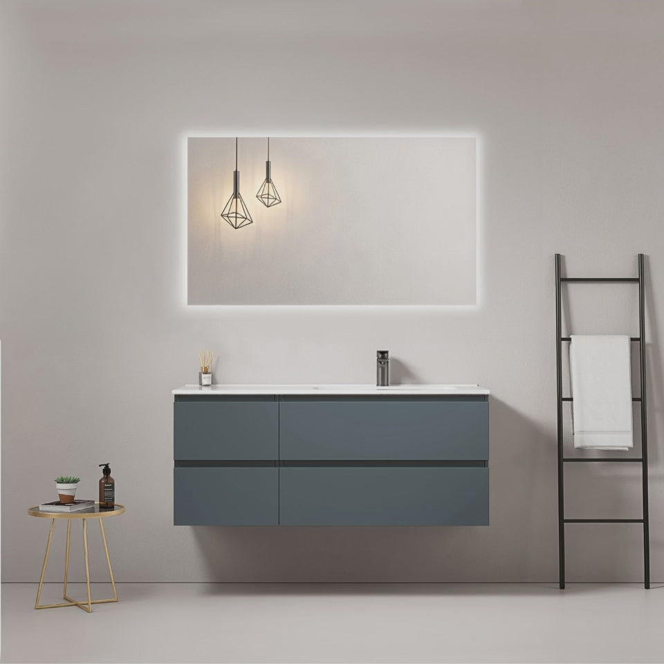 Mobile bagno sospeso 120 cm Blu Mare Lavabo a Destra in Ceramica Specchio Quadro Retroilluminato - Fiji Paint