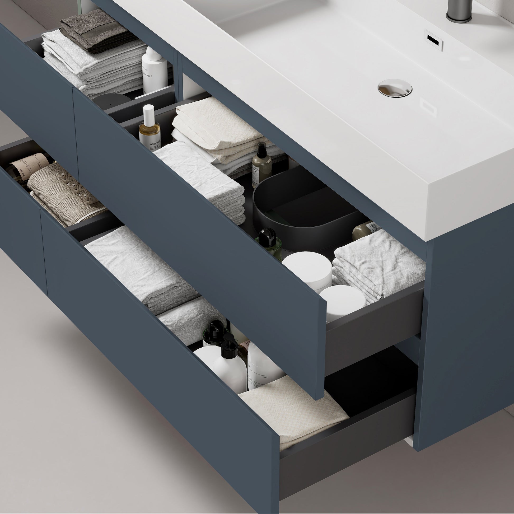 Mobile bagno sospeso 120 cm Blu Mare Lavabo a Destra in Resina Senza Specchio - Fiji Paint