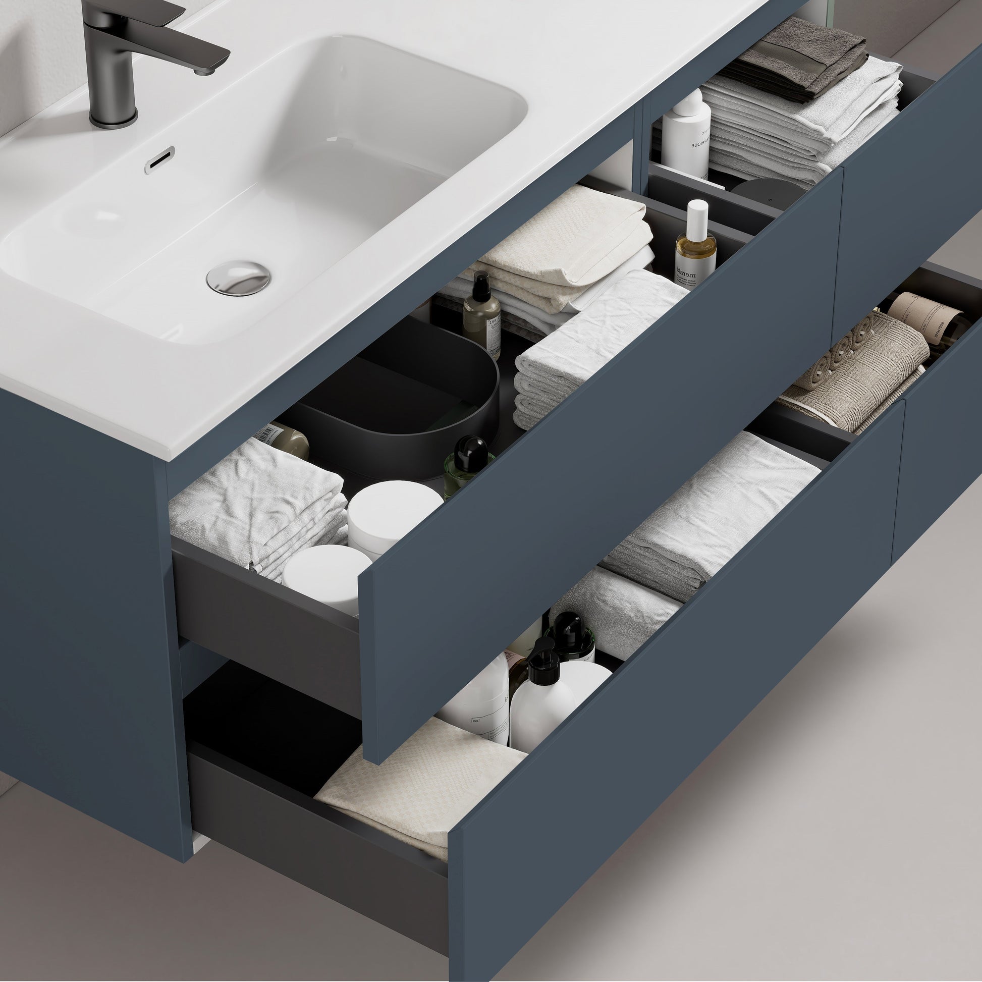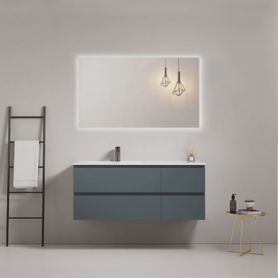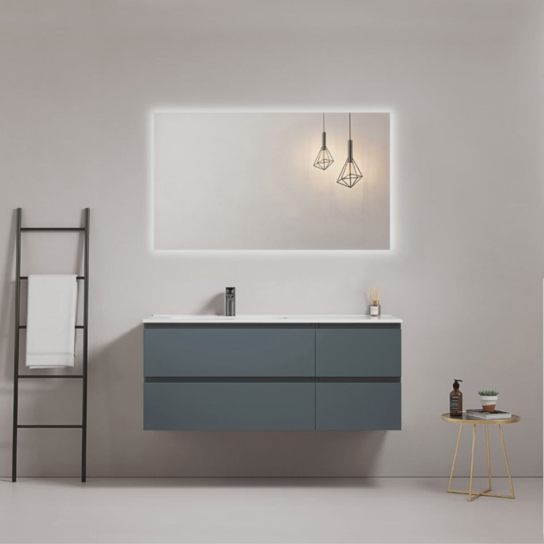 Mobile bagno sospeso 120 cm Blu Mare Lavabo a Sinistra in Ceramica Specchio Quadro Retroilluminato - Fiji Paint