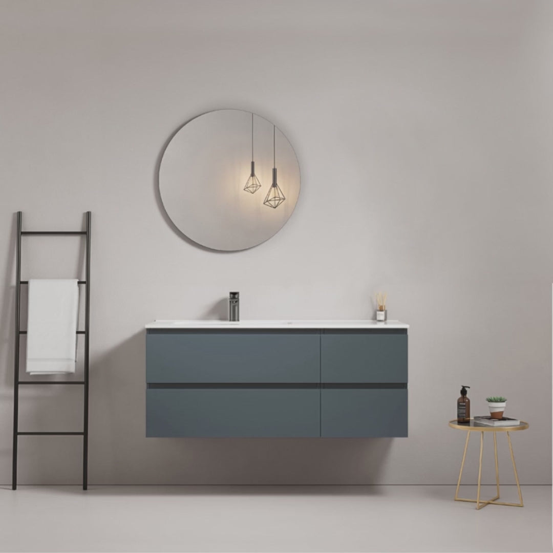 Mobile bagno sospeso 120 cm Blu Mare Lavabo a Sinistra in Ceramica Specchio Tondo - Fiji Paint