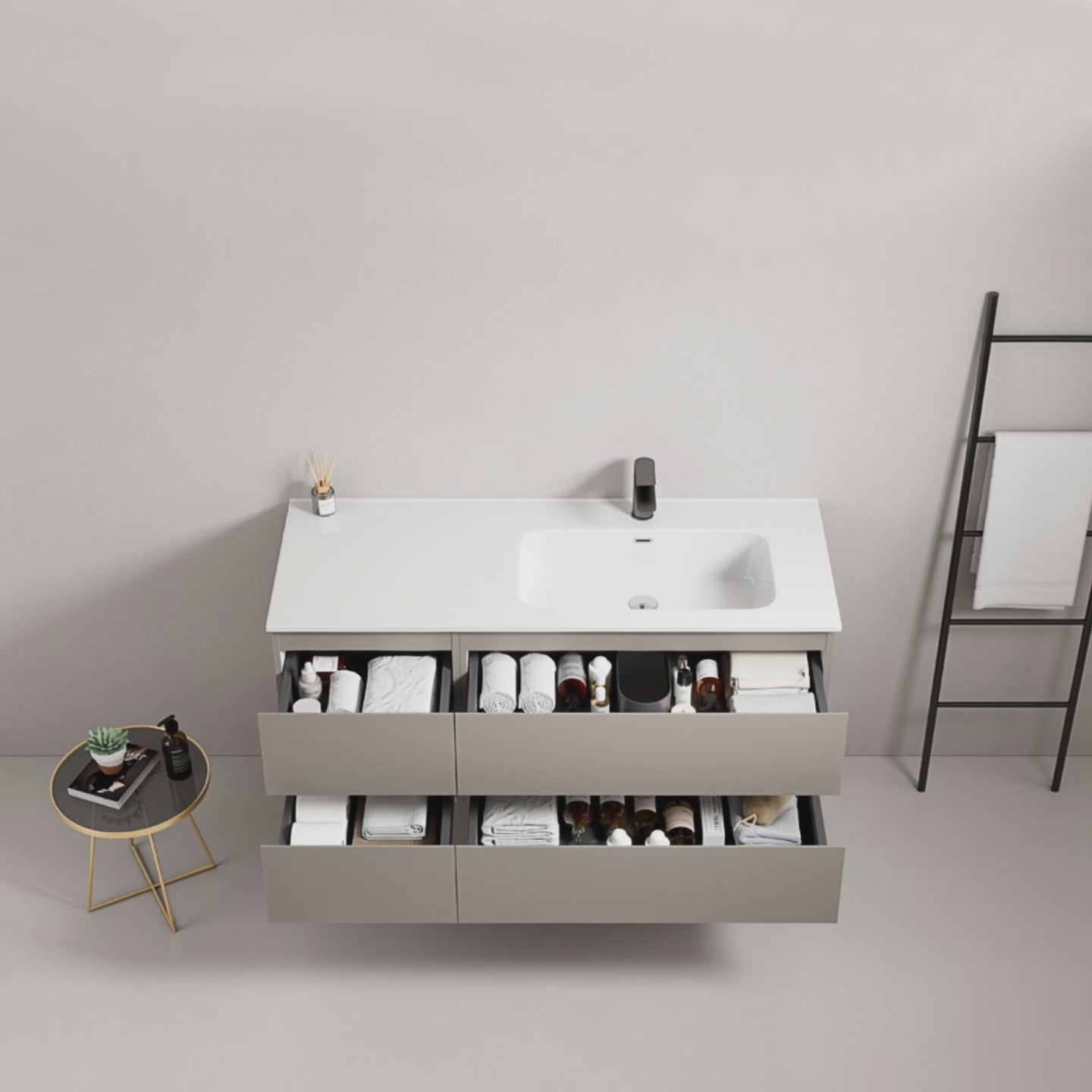 Mobile bagno sospeso 120 cm Grigio Cenere Lavabo a Destra in Ceramica Senza Specchio - Fiji Paint