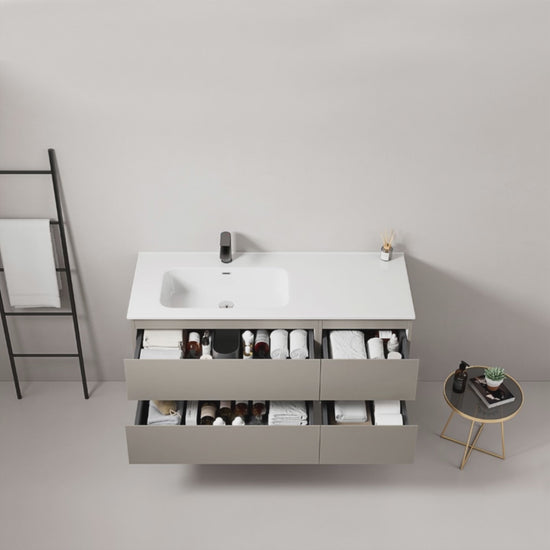 Mobile bagno sospeso 120 cm Grigio Cenere Lavabo a Sinistra in Ceramica Senza Specchio - Fiji Paint