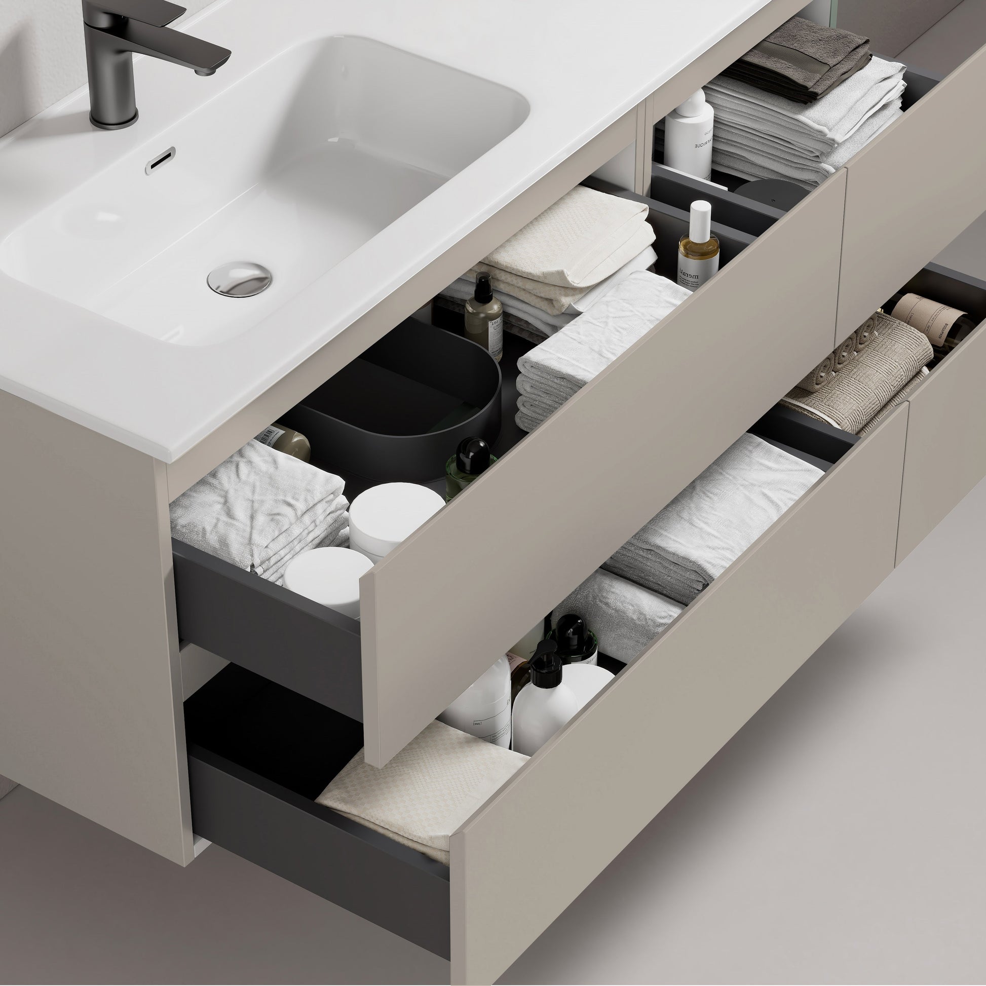 Mobile bagno sospeso 120 cm Grigio Cenere Lavabo a Sinistra in Ceramica Specchio Quadro Retroilluminato - Fiji Paint