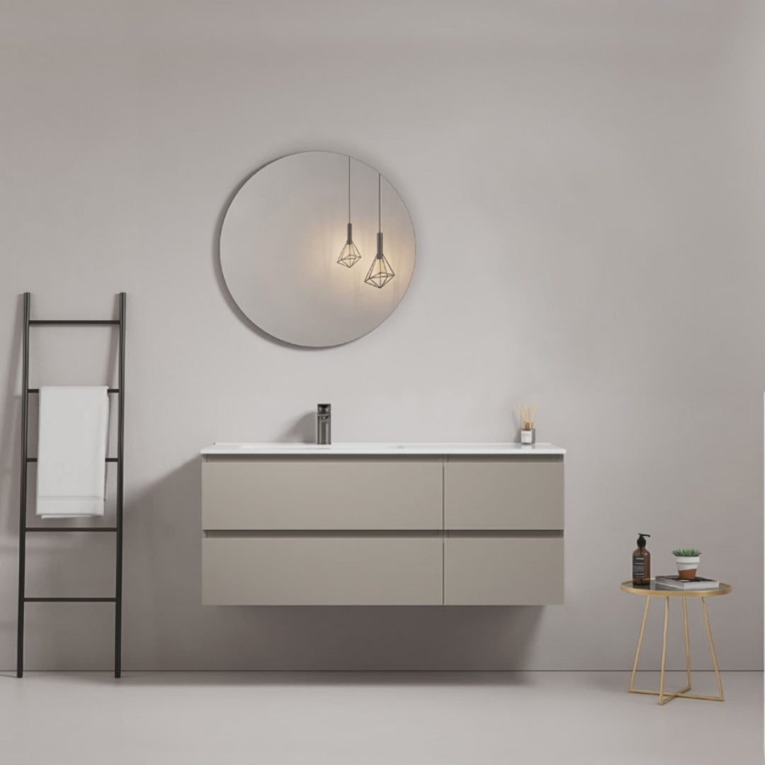 Mobile bagno sospeso 120 cm Grigio Cenere Lavabo a Sinistra in Ceramica Specchio Tondo - Fiji Paint
