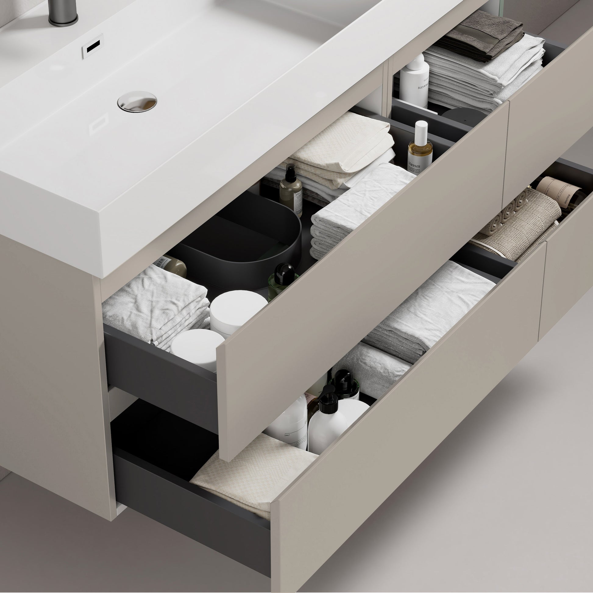 Mobile bagno sospeso 120 cm Grigio Cenere Lavabo a Sinistra in Resina Specchio Tondo Retroilluminato - Fiji Paint