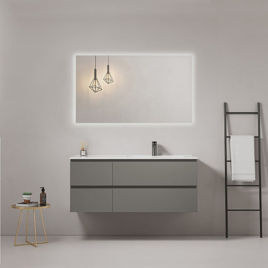 Mobile bagno sospeso 120 cm Grigio Londra Lavabo a Destra in Ceramica Specchio Quadro Retroilluminato - Fiji Paint
