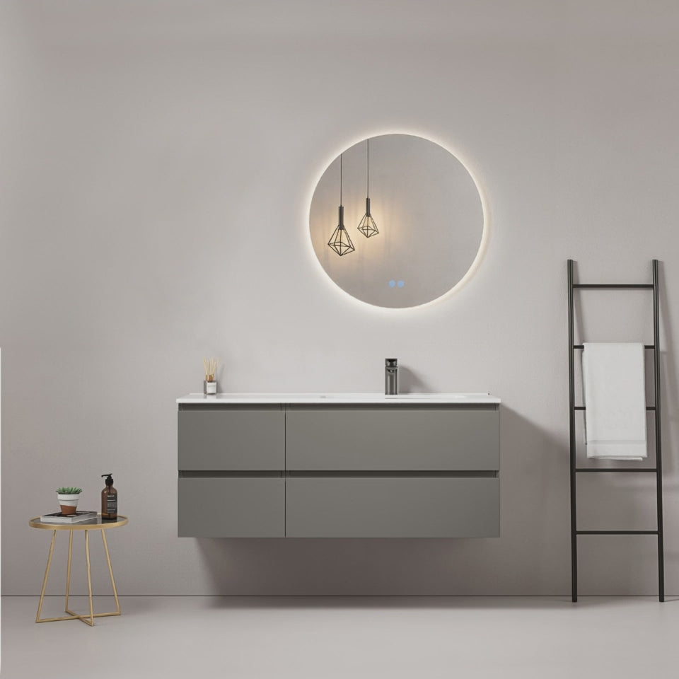 Mobile bagno sospeso 120 cm Grigio Londra Lavabo a Destra in Ceramica Specchio Tondo Retroilluminato - Fiji Paint