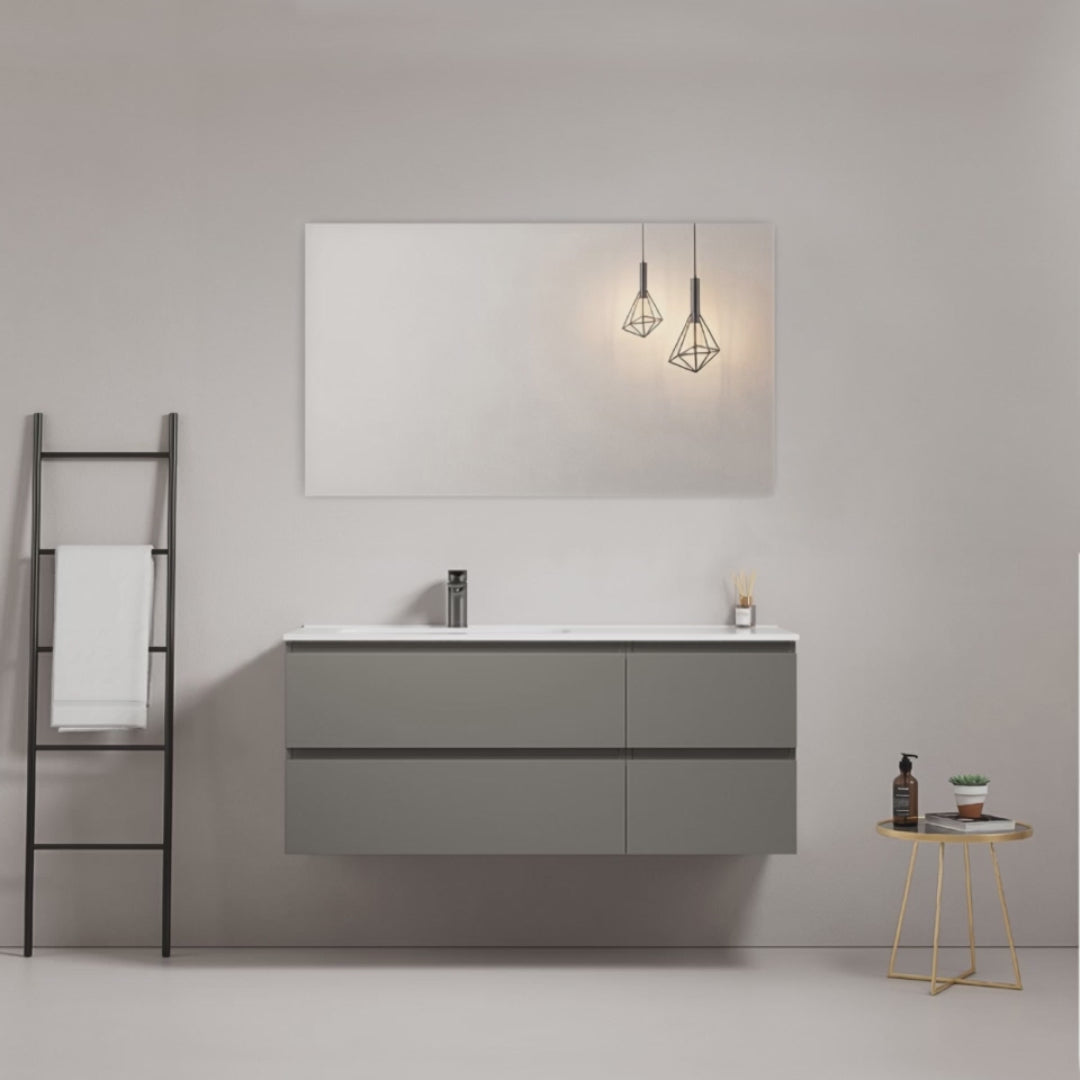 Mobile bagno sospeso 120 cm Grigio Londra Lavabo a Sinistra in Ceramica Specchio Quadro - Fiji Paint