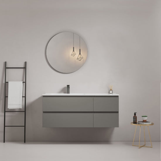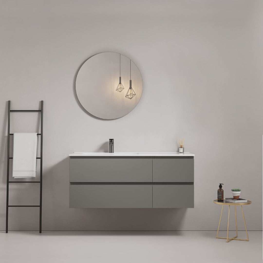 Mobile bagno sospeso 120 cm Grigio Londra Lavabo a Sinistra in Ceramica Specchio Tondo - Fiji Paint