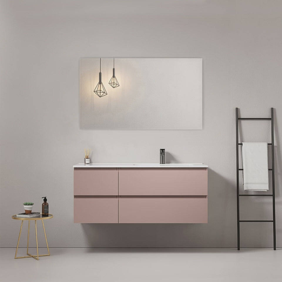 Mobile bagno sospeso 120 cm Rosa Retro Lavabo a Destra in Ceramica Specchio Quadro - Fiji Paint
