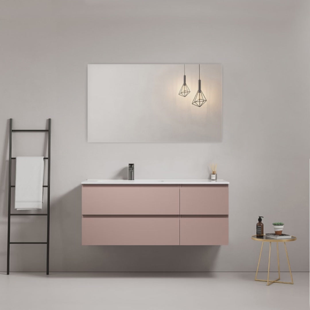 Mobile bagno sospeso 120 cm Rosa Retro Lavabo a Sinistra in Ceramica Specchio Quadro - Fiji Paint