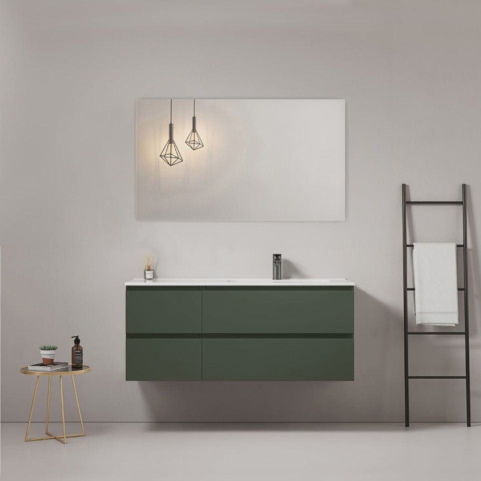 Mobile bagno sospeso 120 cm Verde Comodoro Lavabo a Destra in Ceramica Specchio Quadro - Fiji Paint