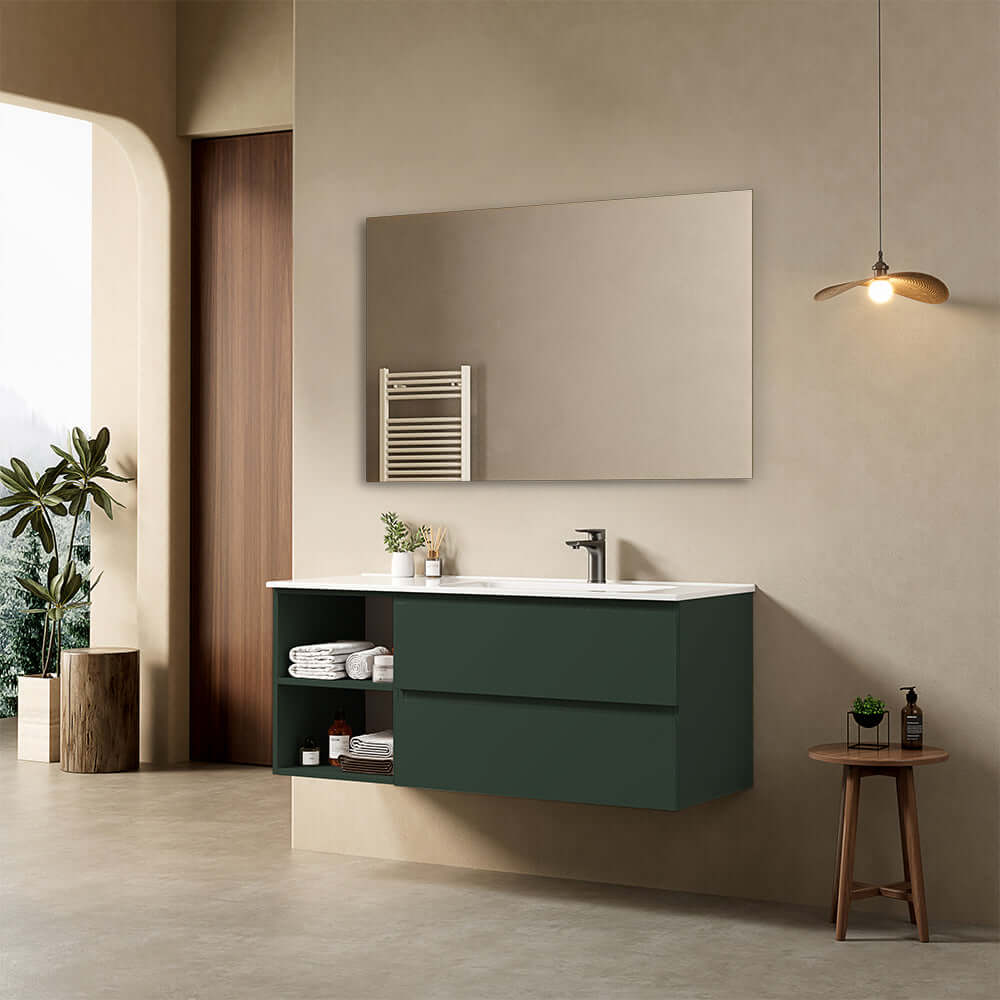 Mobile bagno sospeso 120 cm Verde Comodoro Lavabo a Destra in Ceramica Specchio Quadro - Fiji Paint Plus