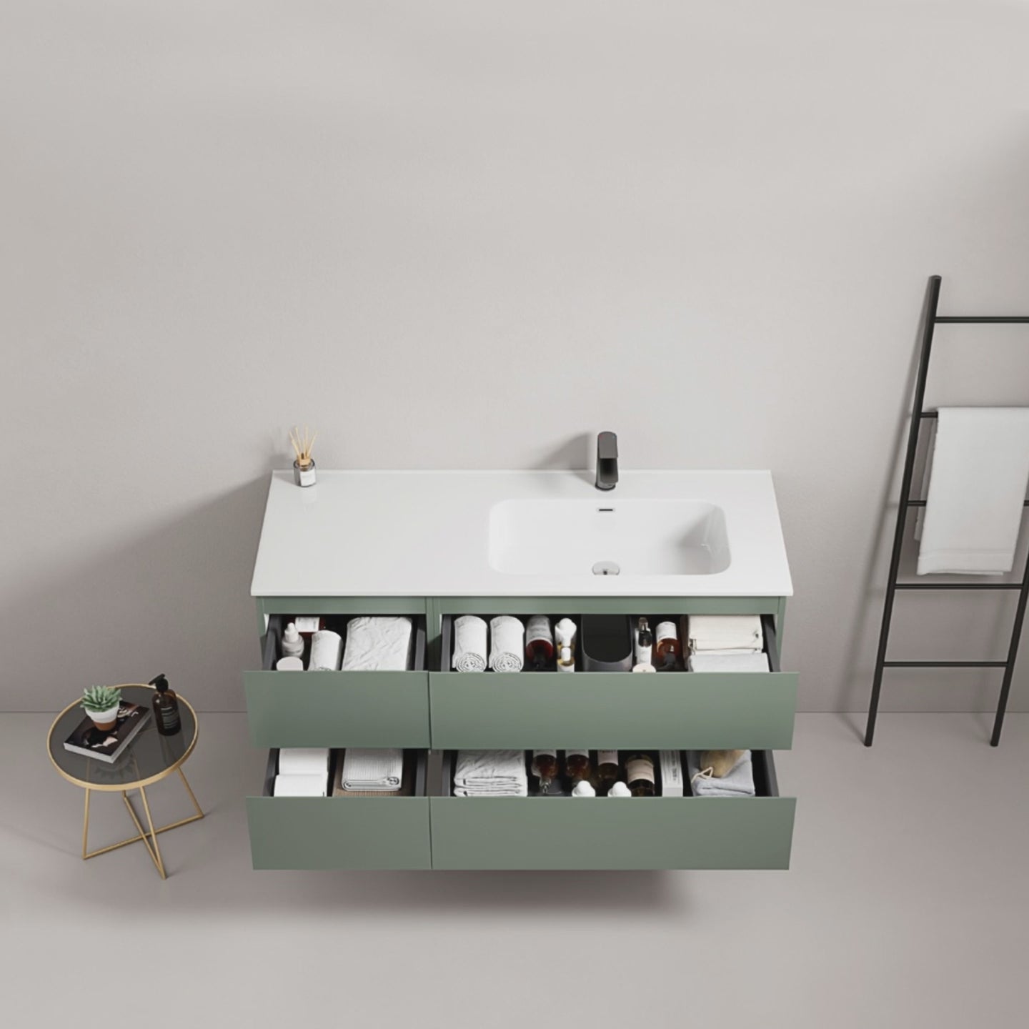 Mobile bagno sospeso 120 cm Verde Salvia Lavabo a Destra in Ceramica Senza Specchio - Fiji Paint