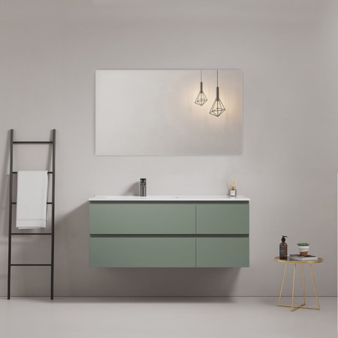 Mobile bagno sospeso 120 cm Verde Salvia Lavabo a Sinistra in Ceramica Specchio Quadro - Fiji Paint