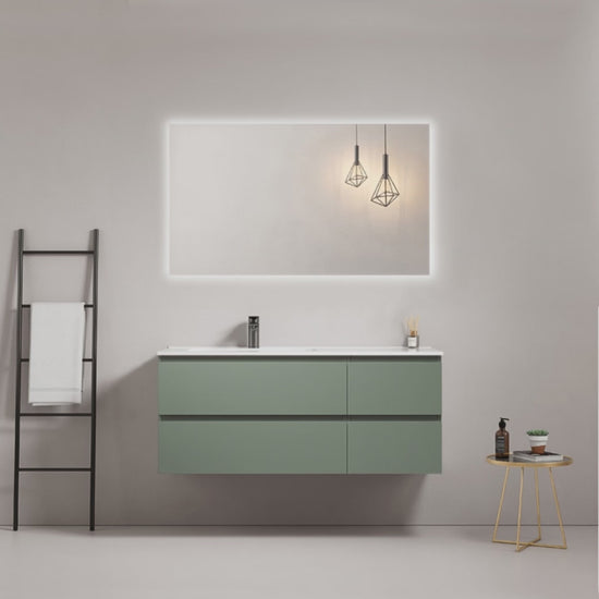 Mobile bagno sospeso 120 cm Verde Salvia Lavabo a Sinistra in Ceramica Specchio Quadro Retroilluminato - Fiji Paint