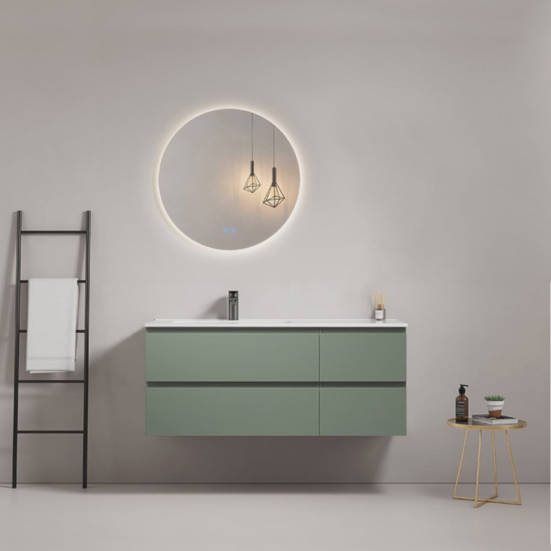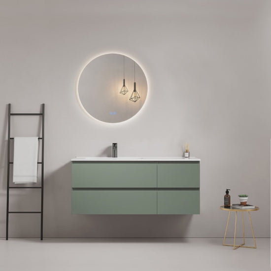 Mobile bagno sospeso 120 cm Verde Salvia Lavabo a Sinistra in Ceramica Specchio Tondo Retroilluminato - Fiji Paint