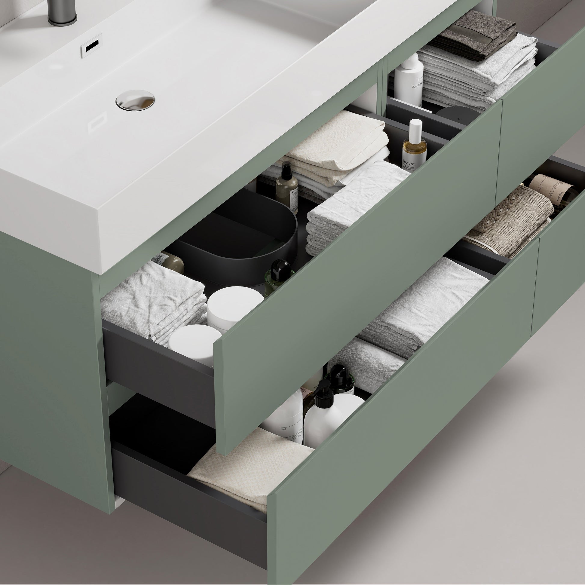 Mobile bagno sospeso 120 cm Verde Salvia Lavabo a Sinistra in Resina Senza Specchio - Fiji Paint