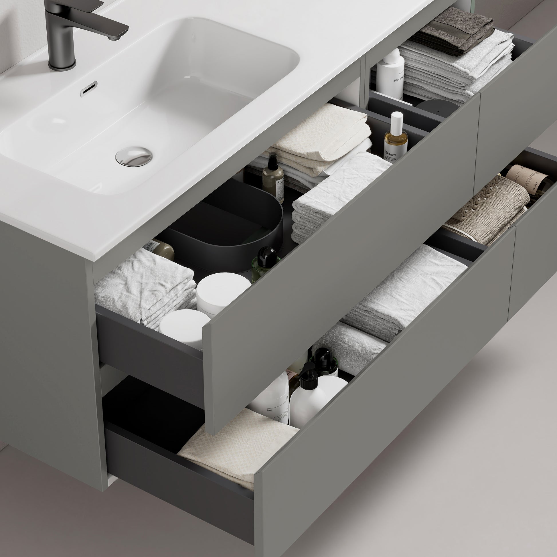 Mobile bagno sospeso 140 cm Grigio Londra Lavabo a Sinistra in Resina Senza Specchio - Fiji Paint