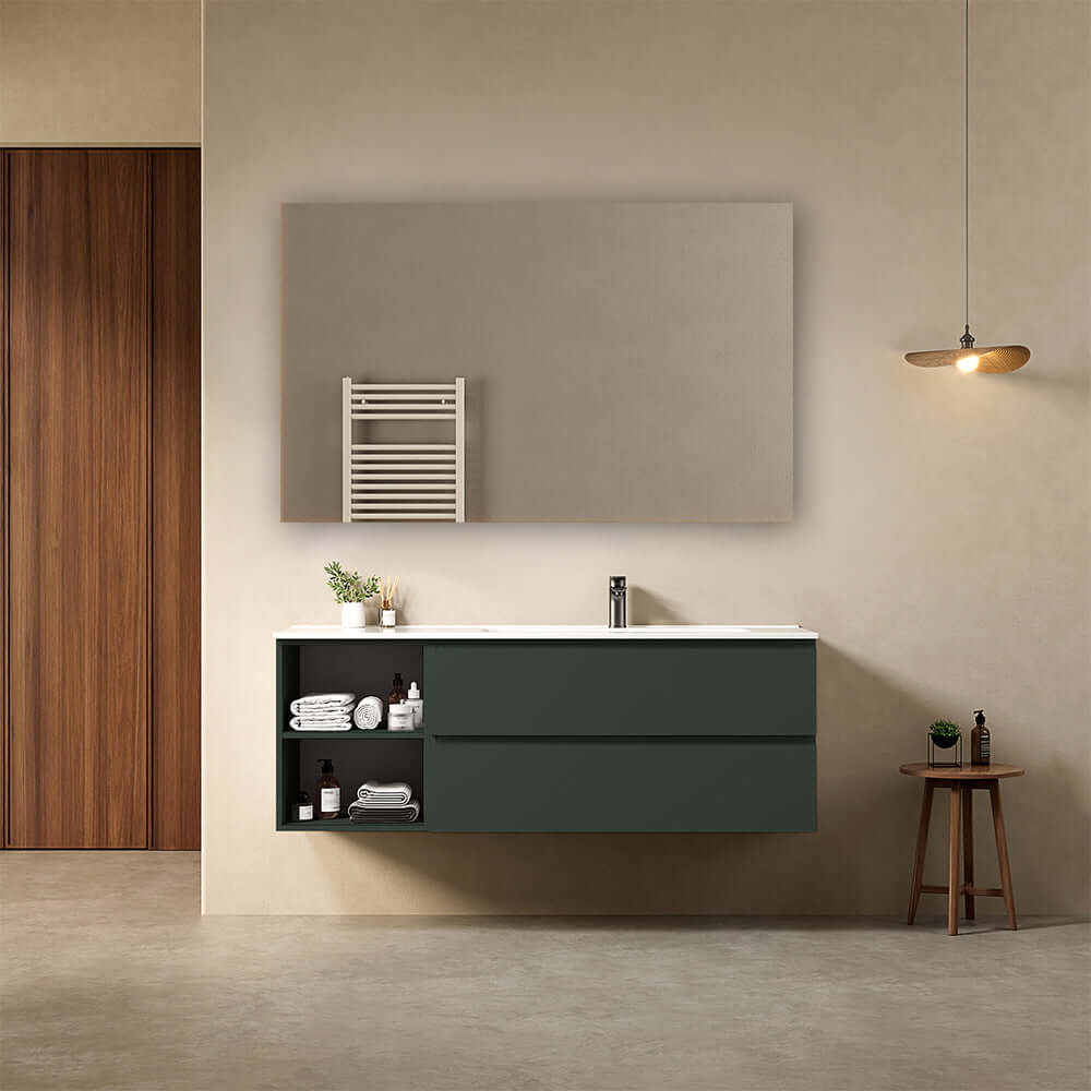 Mobile bagno sospeso 140 cm Verde Comodoro Lavabo a Destra in Resina Specchio Quadro - Fiji Paint Plus