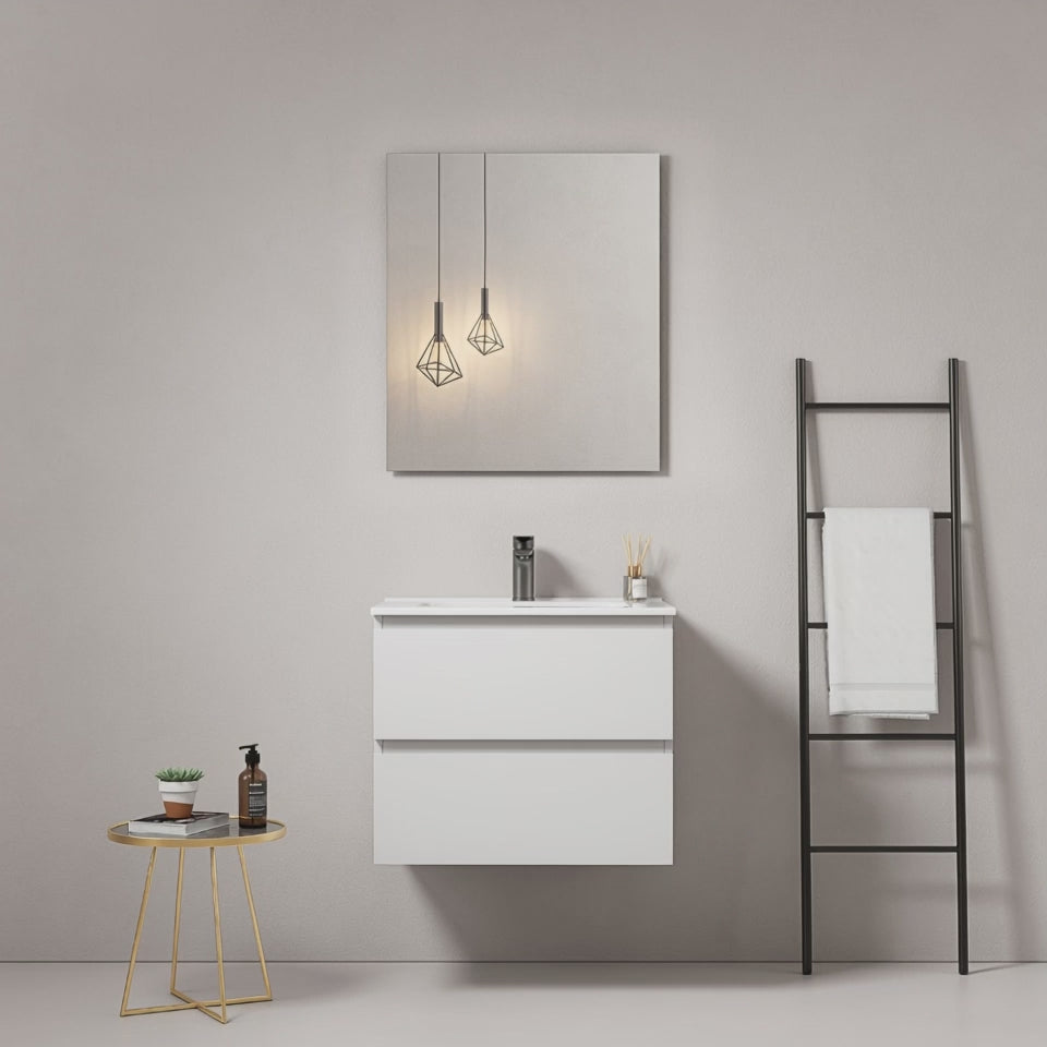 Mobile bagno sospeso 60 cm Bianco Lavabo in Ceramica Specchio Quadro - Fiji Paint