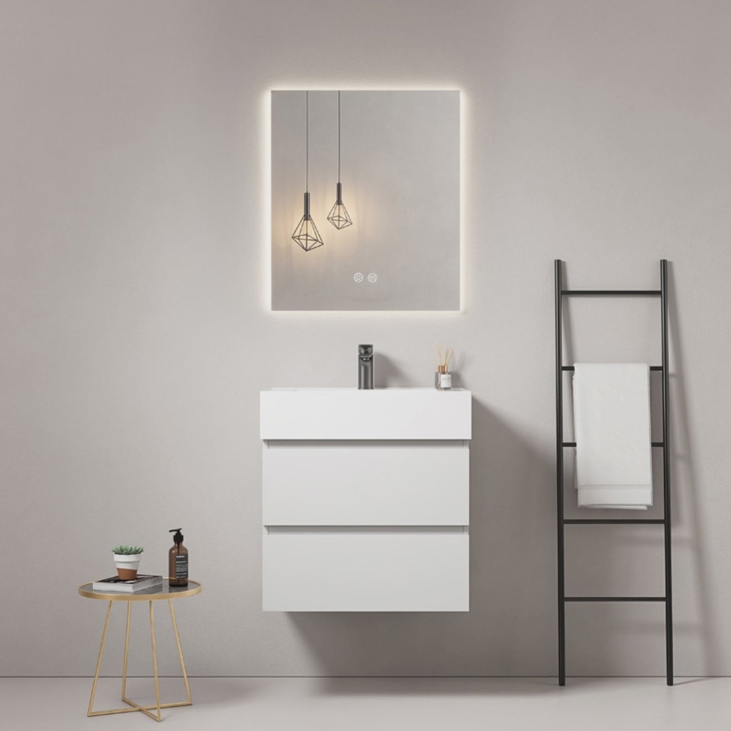 Mobile bagno sospeso 60 cm Bianco Lavabo in Resina Specchio Quadro Retroilluminato - Fiji Paint