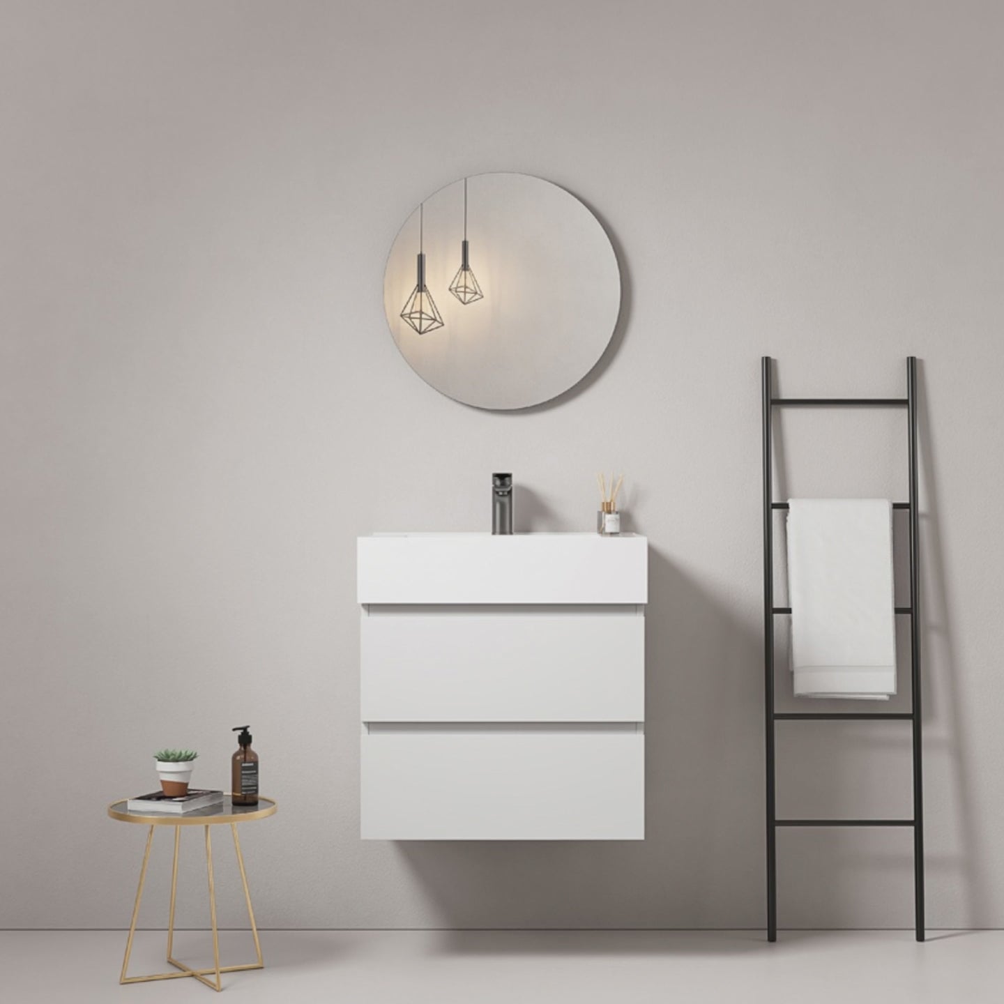 Mobile bagno sospeso 60 cm Bianco Lavabo in Resina Specchio Tondo - Fiji Paint