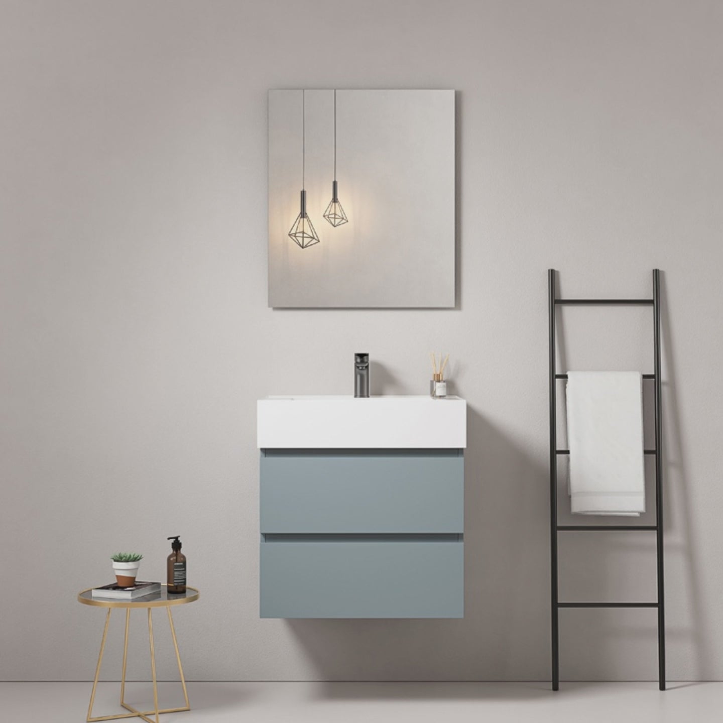 Mobile bagno sospeso 60 cm Blu Avio Lavabo in Resina Specchio Quadro - Fiji Paint