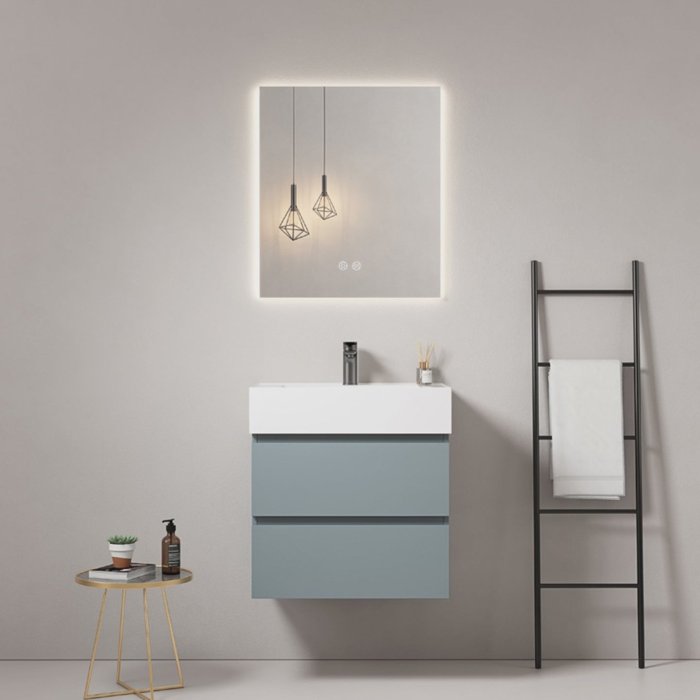 Mobile bagno sospeso 60 cm Blu Avio Lavabo in Resina Specchio Quadro Retroilluminato - Fiji Paint
