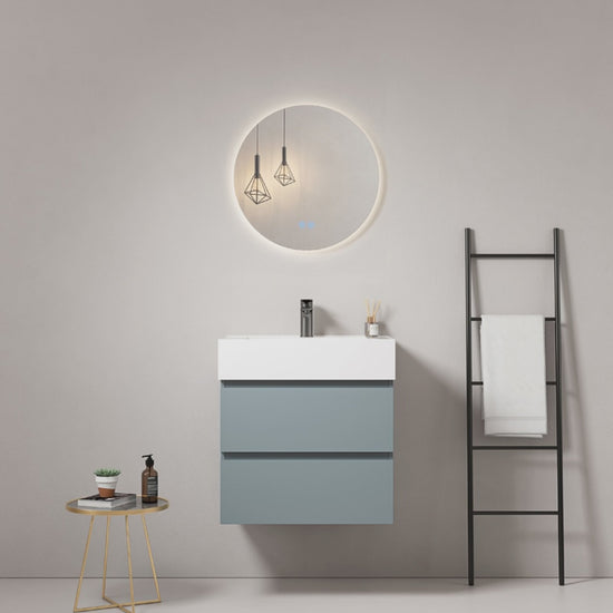 Mobile bagno sospeso 60 cm Blu Avio Lavabo in Resina Specchio Tondo Retroilluminato - Fiji Paint
